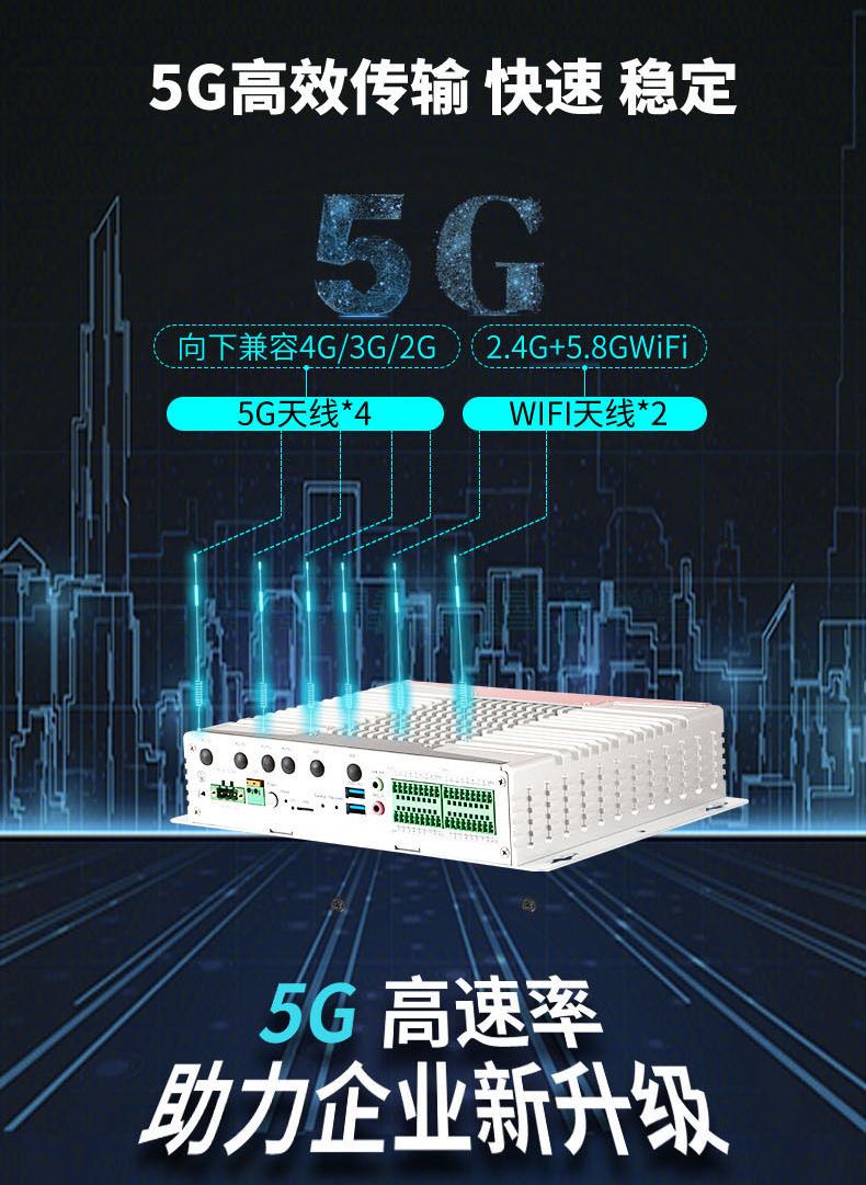 5G 是新一代移動通信系統,5G 與工業生產融合之后,逐步成為支撐工業生產的基礎設施。5G 與工業生產中既有研發設計系統、生產控制系統及服務管理系統等相結合,可以全面推動 5G 垂直行業的研發設計、生產制造、管理服務等生產流程的深刻變革,實現制造業向智能化、服務化、高端化轉型。為滿足市場對5G通信的應用需求,特控近日推出了 一款全新緊湊型高性能嵌入式5G工控機MEC-T8564。
