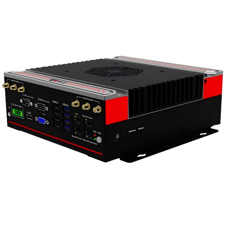 高性能 : 支持65W及以下6/7/8/9 代LGA1151 Intel Core i7/i5/i3 系列處理器 穩(wěn)定可靠 : 純工業(yè)設(shè)計(jì),強(qiáng)勁解熱熱管與純銅一體化的優(yōu)良散熱結(jié)構(gòu),全密封鋁合金箱體,大面積鋁鰭散熱,可實(shí)現(xiàn)橫向與豎向等多種放置的自然對(duì)流散熱,機(jī)箱可抗接觸式6KV強(qiáng)電磁干擾,DC12V-24V寬壓輸入接口豐富 : 4*LAN(Intel),6*COM,支持T-MOD模塊擴(kuò)展,8*GPIO(4*USB2.0/2*RJ45/2*CAN/12DI+12DO三選一擴(kuò)展),4*USB3.0+4*USB2.0 1*VGA,1*HDMI,1*DP,1*遠(yuǎn)程開(kāi)關(guān),1*一鍵還原,1*一鍵備份,1*SIM槽, 1*LINE IN,1*LINE OUT,1*MIC,1*2.5寸硬盤位,1*M.2(KEY-M,2280,PCIEx4 支持SATA) , 1*M.2( KEY-B,3042/3052, PCIE+USB3.0支 持 4G/5G) , 1*MINI PCIE( 全 高 ,PCIE+USB2.0信號(hào),支持WiFi/BT)外觀設(shè)計(jì) : 鋁合金一體成型,結(jié)構(gòu)緊湊,MiNi小巧,工藝精細(xì),科技時(shí)尚